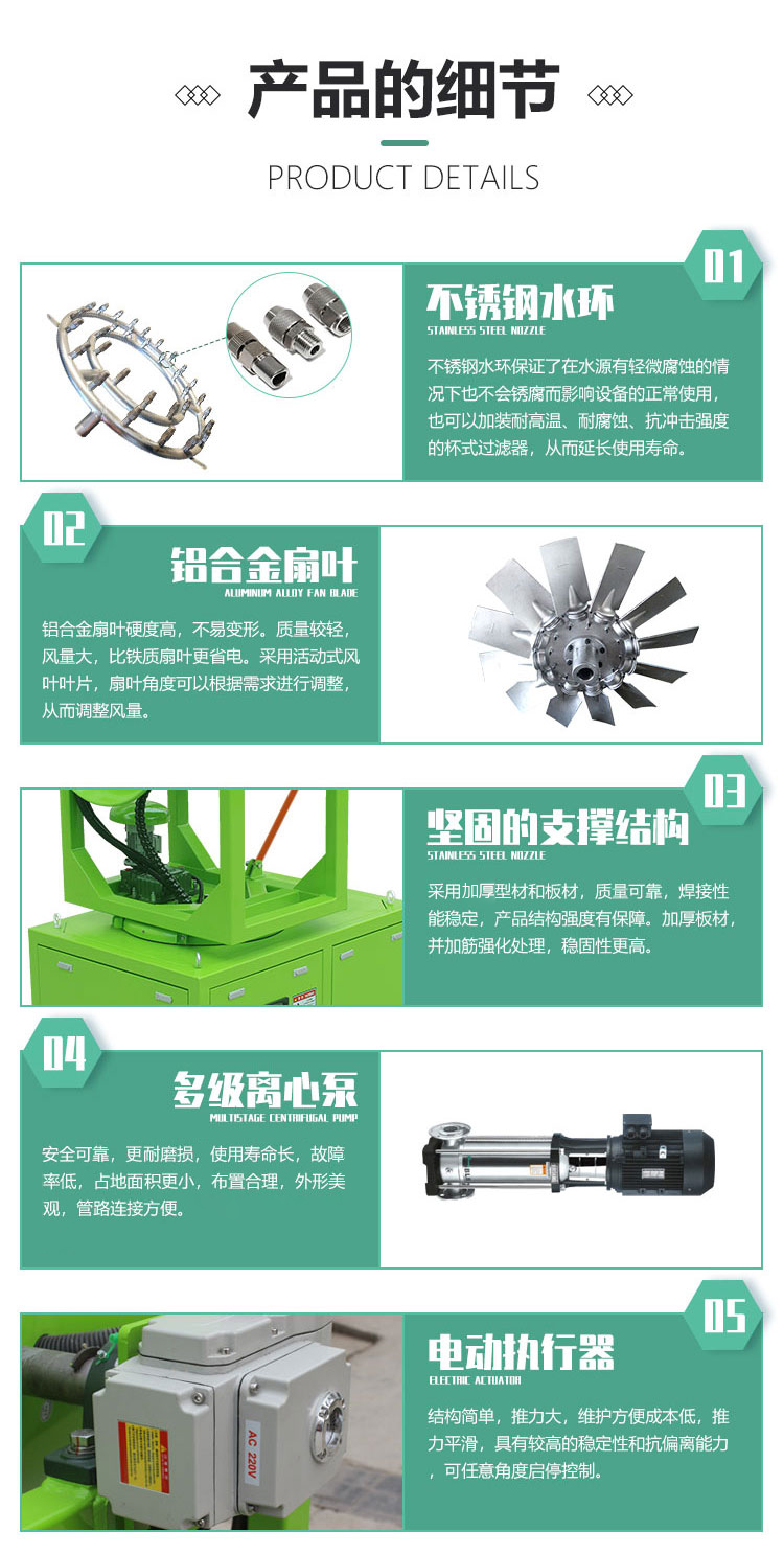 產品特點:固定式全自動霧炮機采用箱體式結構,安裝方便;除塵效果好,覆蓋范圍廣,工作效率高。