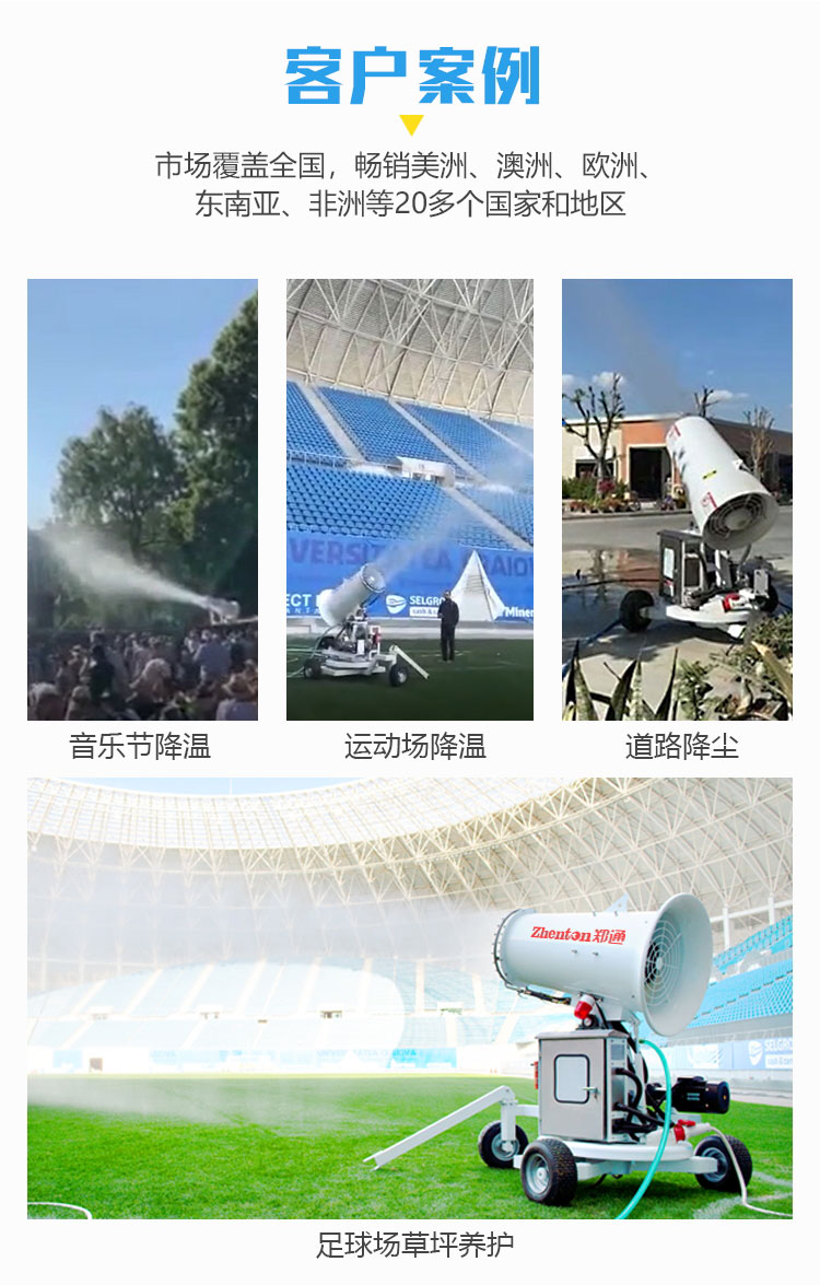 主要用途:城市拆遷工地、冶金鋼鐵企業、采礦區域、煤化工企業、水泥廠、火力發電廠、建筑工地、物料和礦產品露天堆放廠、混凝土處理廠、垃圾堆放場、垃圾焚燒廠、沙廠、干式物料倉庫、露天爆破、重度粉塵區域。