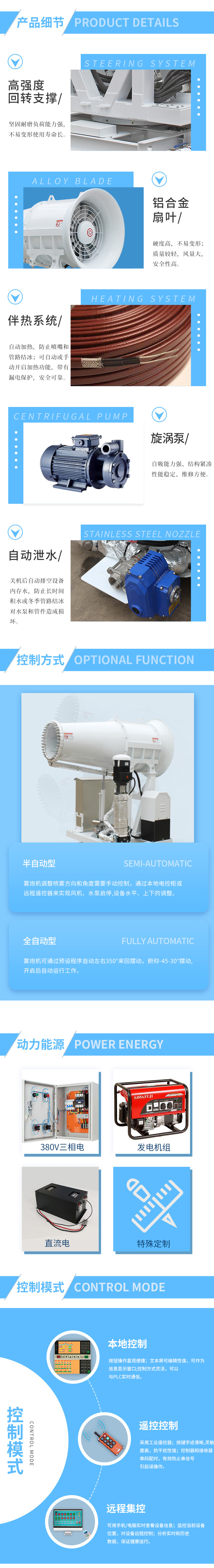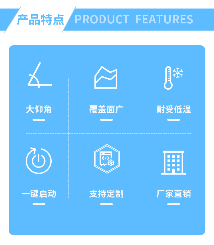 產品特點:60米塔臺式大仰角霧炮機有著讓人驚嘆的-45-30度的上下移動區間,同時,針對塔臺式安裝方式而確定的更加牢固的底座+支撐結構的設計增強了設備的穩定性和可靠性。