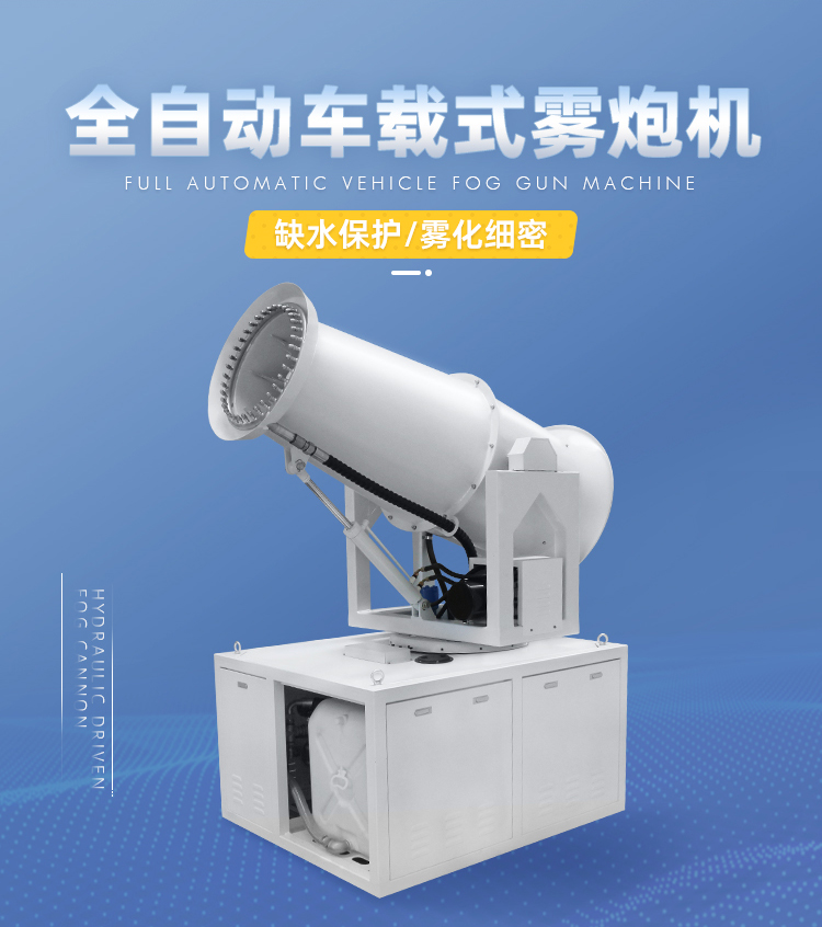 產品特點:60米全自動霧炮機的效率高、射程遠、覆蓋面積大、霧粒細小且均勻、抑塵效果好。采用了液壓馬達,操作更靈活、風量更大;水箱配有非接觸式液位感應器,實現水箱缺水保護。