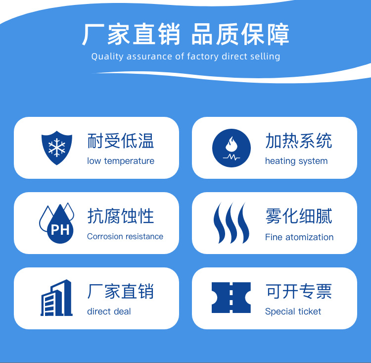產(chǎn)品特點(diǎn):化工廠不銹鋼防腐射霧器使用不銹鋼板材替換了普通碳鋼板材。從而使得設(shè)備天然的具有耐銹,耐腐蝕能力;其它部件可噴涂環(huán)氧樹脂防腐涂層進(jìn)一步提升抗氧化能力。