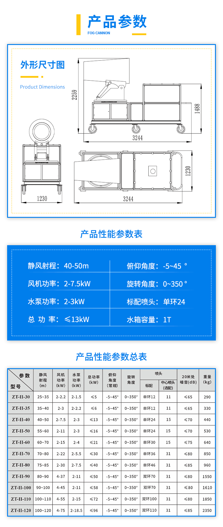 產品特點:手推箱體式霧炮機配備不銹鋼中央噴頭,水霧集中、霧化效果好;搭配1T容量的大型水箱,作業范圍不再受水源條件困擾,噴霧時間更持久。