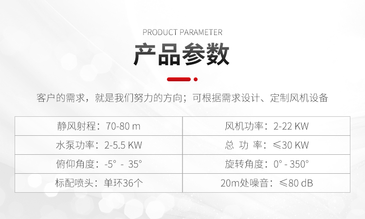 產(chǎn)品特點(diǎn):70米抑塵霧炮機(jī)射程遠(yuǎn)、穿透性強(qiáng)、覆蓋范圍廣,水霧顆粒細(xì)小、噴灑更加均勻、降塵速度快、工作效率更高。