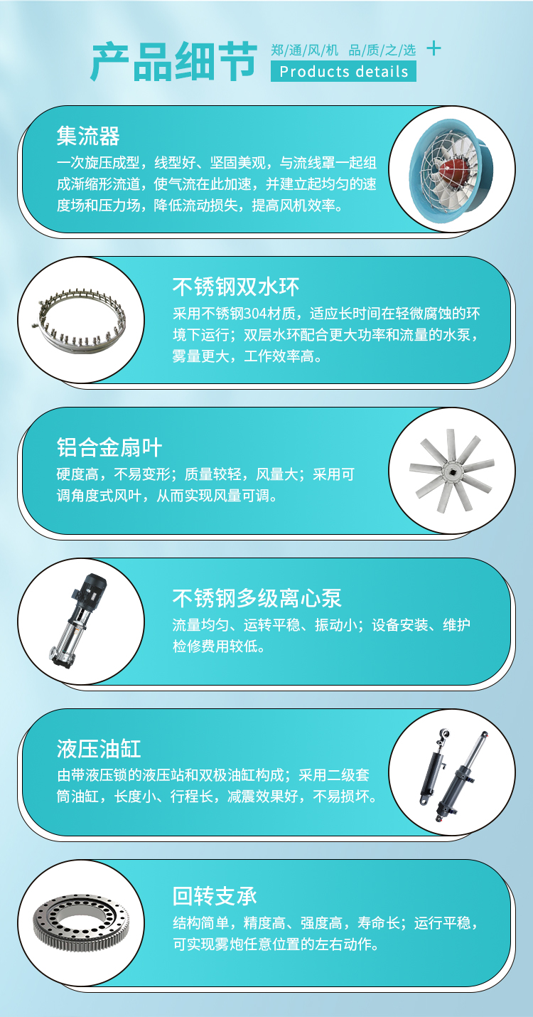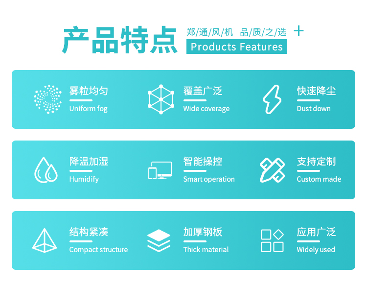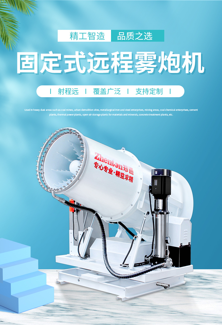 產品特點:90米遠程霧炮機動力強、射程遠、覆蓋廣泛、可實現精量噴霧;工作效能高、噴霧加濕更快,能迅速降溫抑塵;配件驅動可靈活定制,操作便捷,靈活方便。