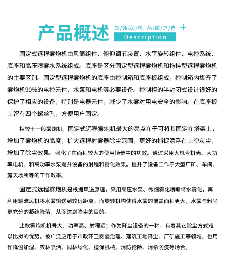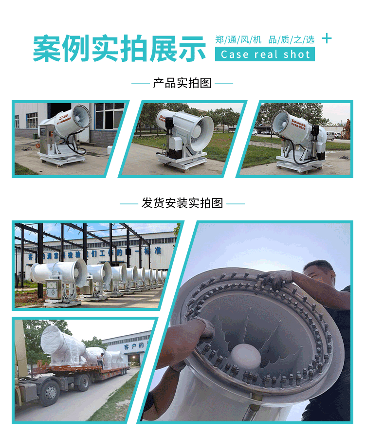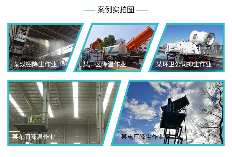 主要用途:用于煤礦場、城市拆遷工地、冶金鋼鐵企業、采礦區域、煤化工企業、水泥廠、火力發電廠、物料和礦產品露天堆放廠、混凝土處理廠、垃圾堆放場、垃圾焚燒廠、沙廠、干式物料倉庫、露天爆破、重度粉塵區域。