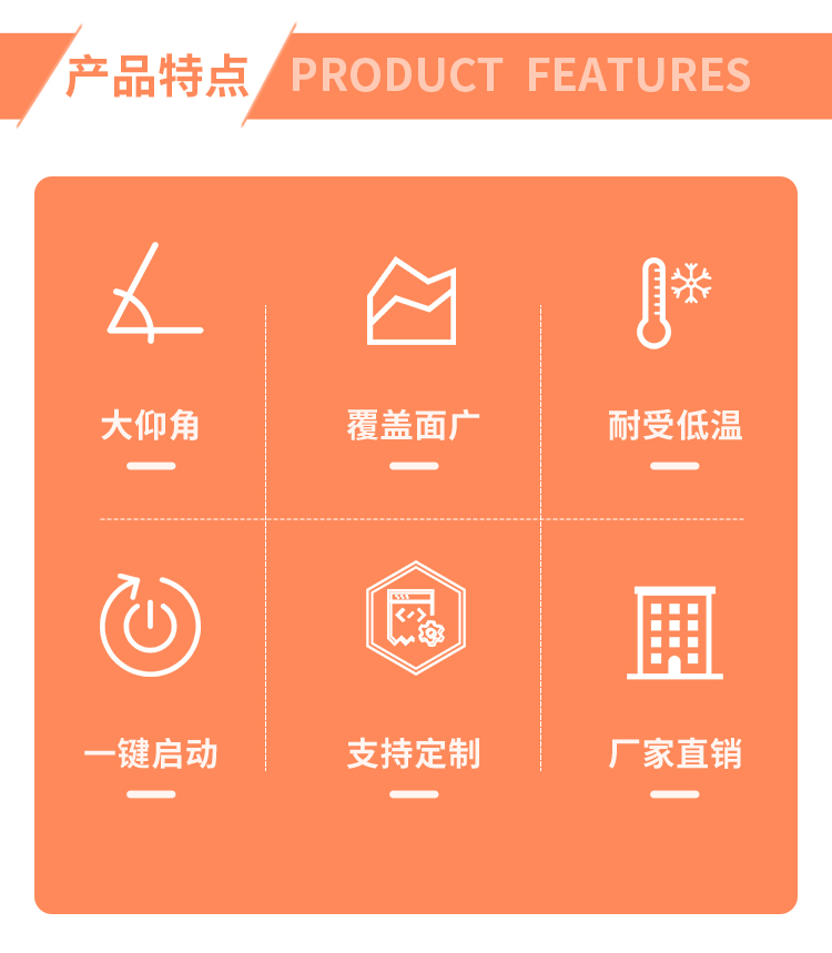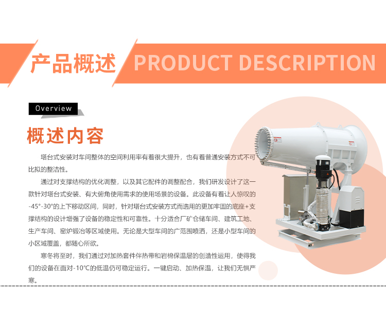 產(chǎn)品特點(diǎn):塔臺(tái)式大仰角霧炮機(jī)有著讓人驚嘆的-45-30度的上下移動(dòng)區(qū)間,同時(shí),針對(duì)塔臺(tái)式安裝方式而確定的更加牢固的底座+支撐結(jié)構(gòu)的設(shè)計(jì)增強(qiáng)了設(shè)備的穩(wěn)定性和可靠性。