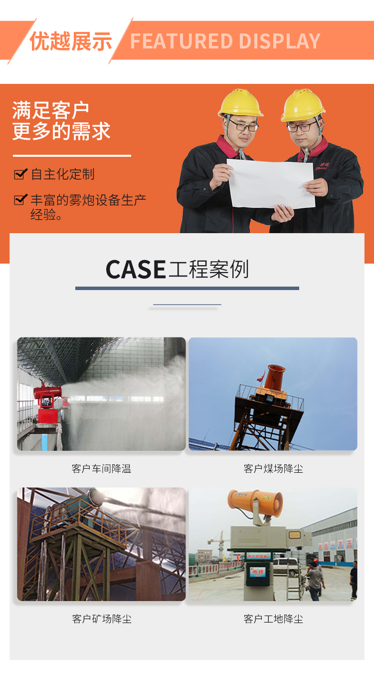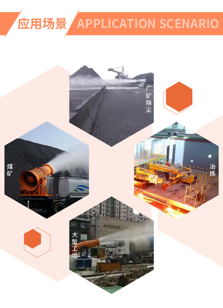 主要用途:適用于城市拆遷工地、冶金鋼鐵企業(yè)、采礦區(qū)域、煤化工企業(yè)、水泥廠、火力發(fā)電廠、建筑工地、物料和礦產(chǎn)品露天堆放廠、混凝土處理廠、垃圾堆放場(chǎng)、垃圾焚燒廠、沙廠、干式物料倉(cāng)庫(kù)、露天爆破、重度粉塵區(qū)域。