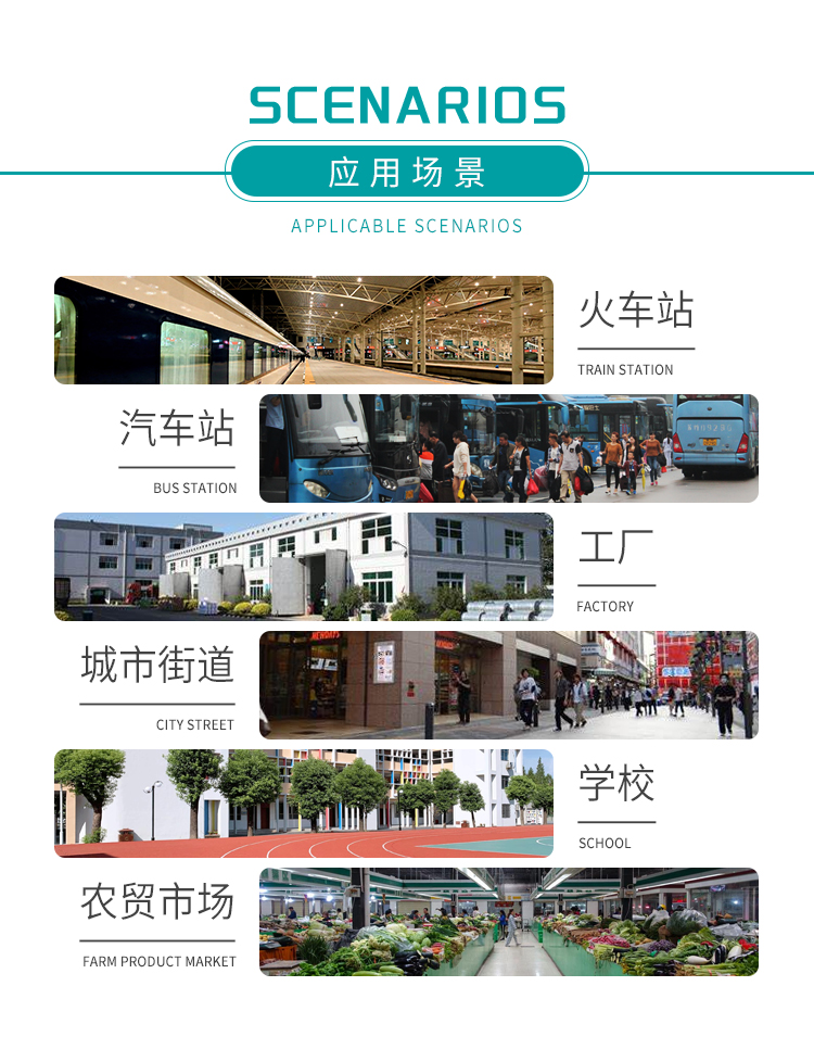 主要用途:農貿市場、工廠、畜牧養殖、城市街道、垃圾處理廠、學校、焦化廠、煤場、礦場、港口碼頭等。