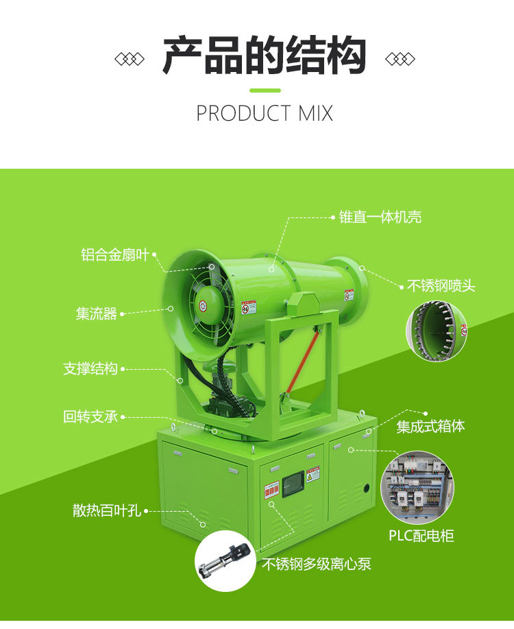 產品特點:園林全自動降塵霧炮機采用箱體式結構,安裝方便;除塵效果好,覆蓋范圍廣,工作效率高。