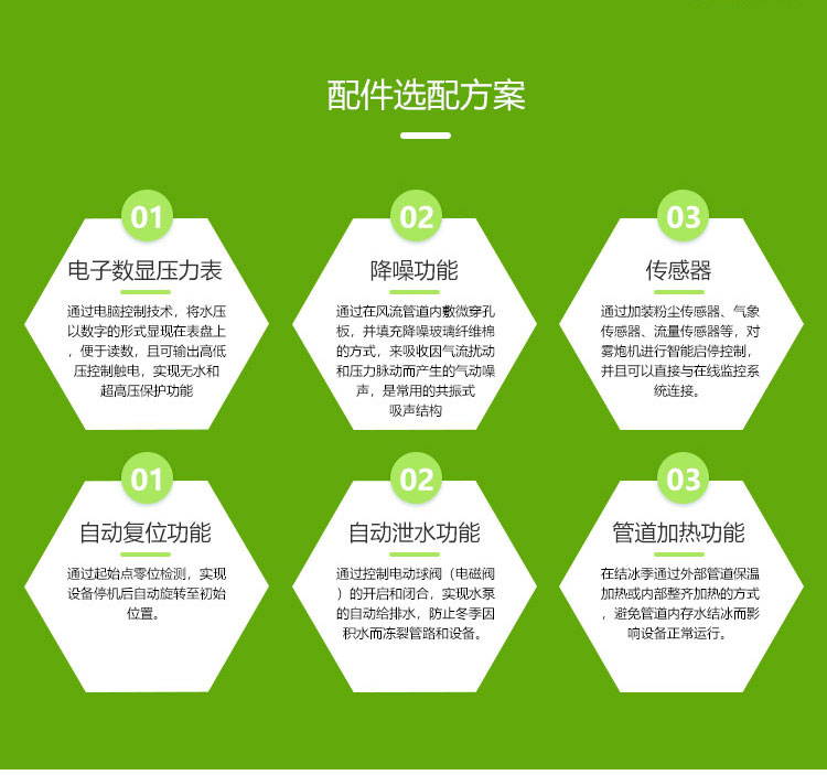 主要用途:建筑工地 煤場,礦場、料場、碼頭工業除塵,農業,園林綠化等飛機場、高速公路、車站、碼頭、公共場所、運動場地、炎熱場地等降塵保濕降溫消毒。