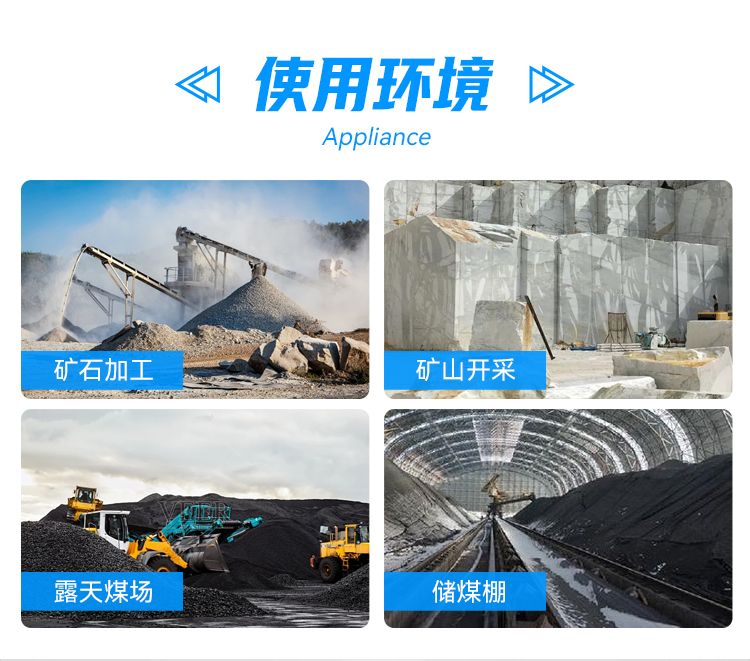 主要用途:可用于煤礦場、城市拆遷工地、冶金鋼鐵企業、采礦區域等多種特殊環境。