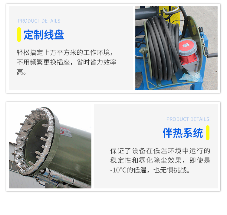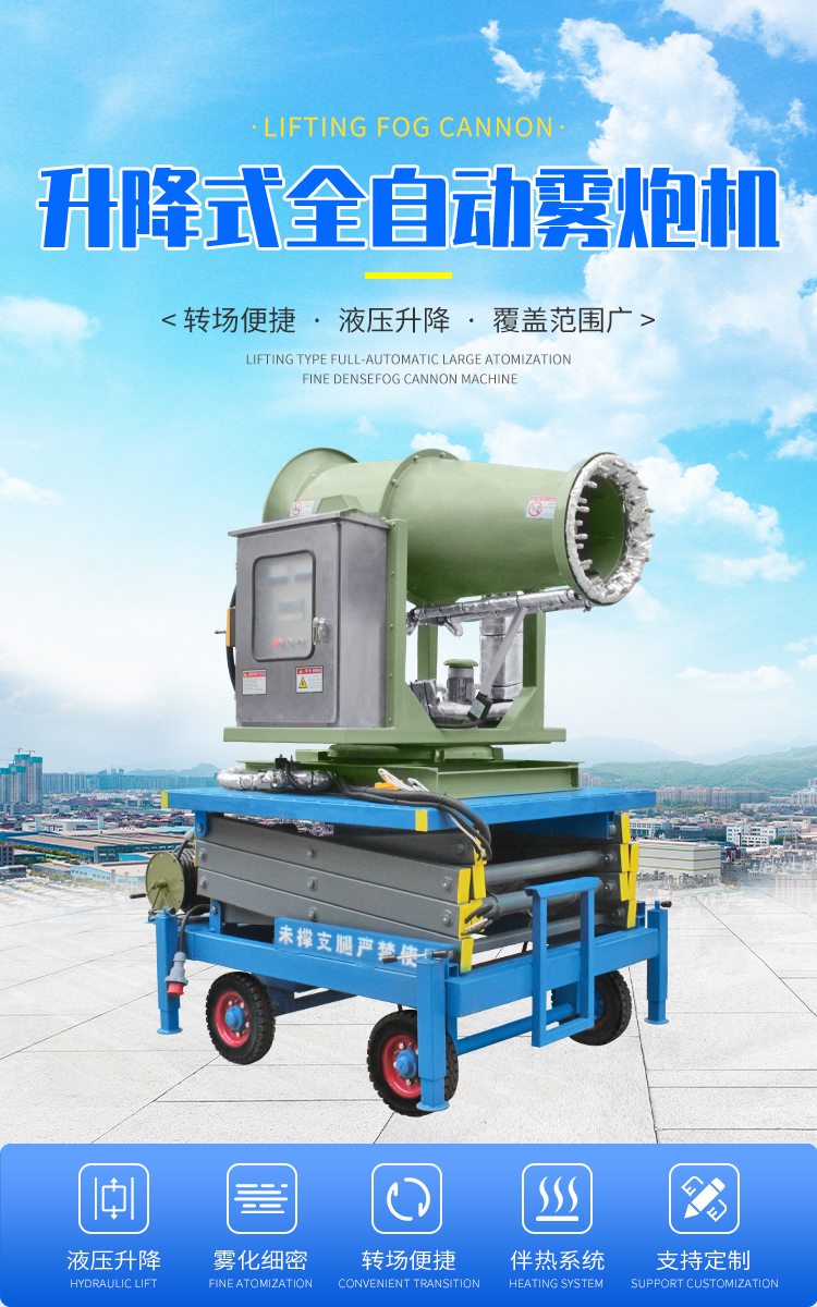 產(chǎn)品特點(diǎn):這款40米升降式霧炮機(jī),采用拖車式設(shè)計(jì),方便移動(dòng),轉(zhuǎn)場靈活,全自動(dòng)操作方式,液壓升降,可實(shí)現(xiàn)高處噴霧降塵,覆蓋范圍更廣。除此之外,這款霧炮機(jī)還加有伴熱保溫系統(tǒng),零度環(huán)境也能正常穩(wěn)定運(yùn)行。