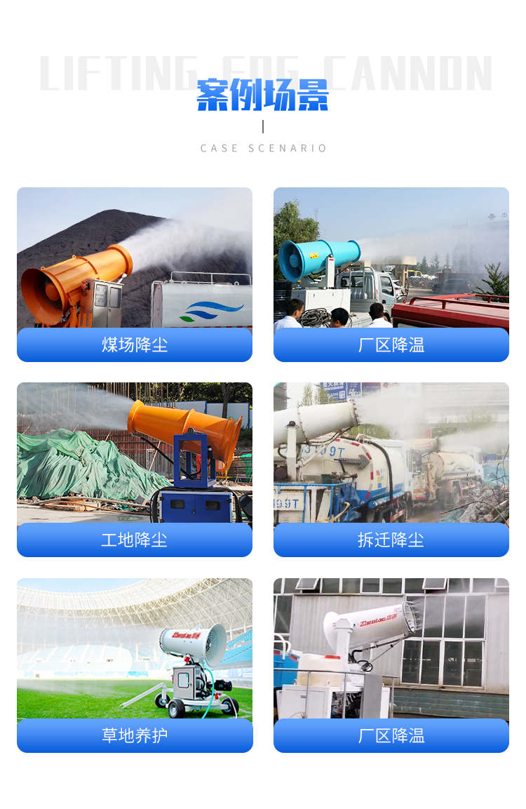 主要用途:主要適用于:垃圾處理廠、港口碼頭、儲(chǔ)煤棚、工地等場景的降溫除塵。