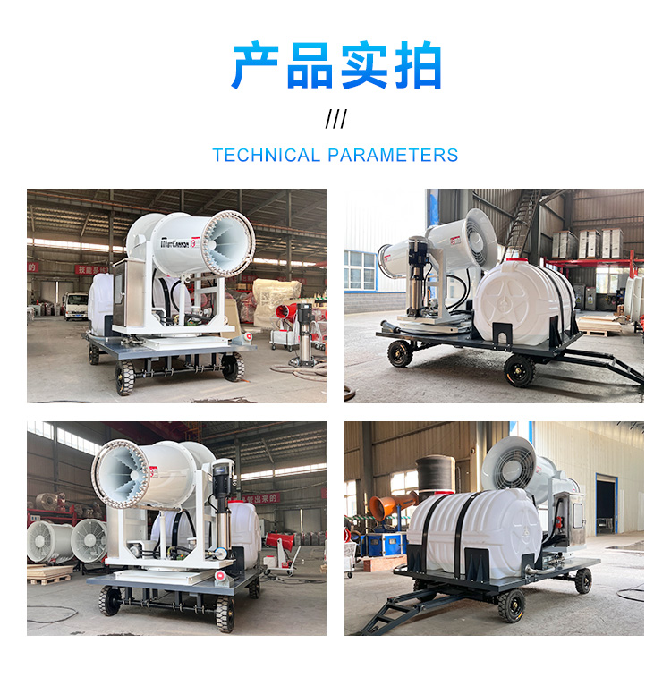 產品特點:70米拖車式霧炮機具有多項特點,其射程遠、穿透力強,能覆蓋大面積區域,實現快速降塵。配備2T水箱,確保長時間連續作業,無需頻繁加水。該霧炮機采用PLC智能控制,具備手動、自動和遙控三種控制模式,操作便捷靈活。