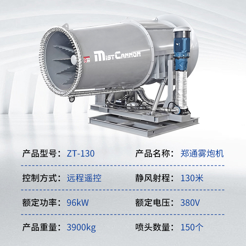 產(chǎn)品特點(diǎn):130米霧炮機(jī)是一款專為煤場等大型粉塵作業(yè)環(huán)境設(shè)計(jì)的高效降塵設(shè)備。其采用高壓噴霧技術(shù),將水霧化成微米級細(xì)小顆粒,通過大功率風(fēng)機(jī)送至130米超遠(yuǎn)距離,覆蓋范圍廣、穿透性強(qiáng)。設(shè)備配備全自動控制系統(tǒng),支持水平350度旋轉(zhuǎn)及俯仰角度調(diào)節(jié),可靈活應(yīng)對煤場不同區(qū)域的揚(yáng)塵問題,實(shí)現(xiàn)精準(zhǔn)抑塵。