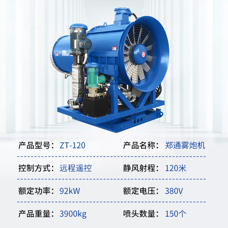 主要用途:120 型防爆霧炮機主要是用于石油化工行業,煤礦場,露天煤棚、粉塵車間、料場、垃圾填埋場、鋼鐵廠、焦化廠等易燃易爆的場景使用。