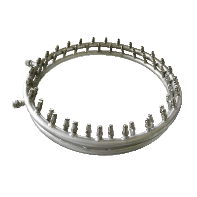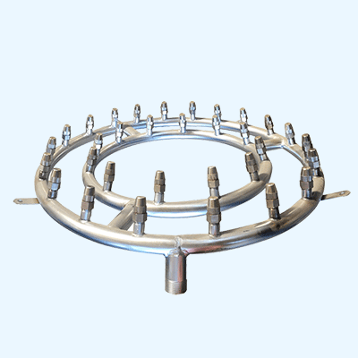 兩圈水環(huán),—個(gè)進(jìn)水口,可有效增加噴頭數(shù)量,且噴頭數(shù)量與噴頭口徑搭配靈活。