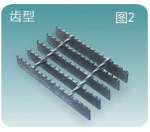 齒型:齒型鋼格板防滑性能好,用于油污較多的海上石油平臺(tái)、設(shè)備操作臺(tái)等,但齒型鋼格板經(jīng)沖齒后強(qiáng)度有所下降。