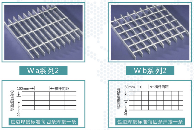 系列二 : 鋼格板相對(duì)比較經(jīng)濟(jì)和輕便,受荷扁鋼的中心間距40mm。符合英國(guó)、德國(guó)、法國(guó)及日本等標(biāo)準(zhǔn)規(guī)定的固定平臺(tái)、走道及樓梯踏步的規(guī)格。常用于皮帶走廊、倉(cāng)庫(kù)貨架、閣樓面板、棧橋、防護(hù)欄和遮陽(yáng)柵等。